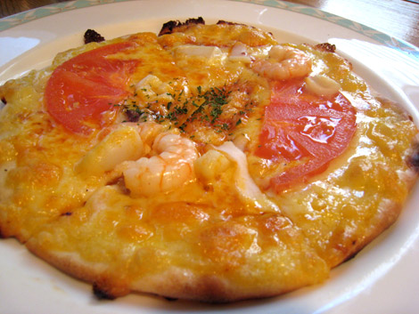 写真は「海の幸のピザ」¥460です。