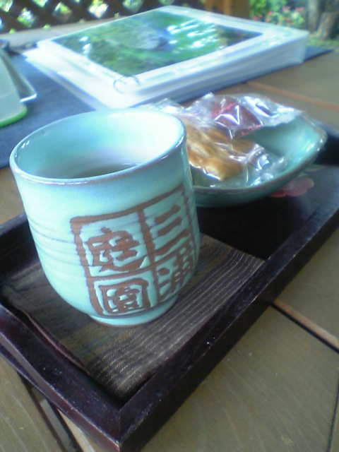 庭園内を回り終えたら、庭園の人のご好意でお茶とお菓子を