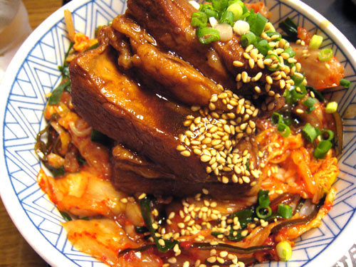 ご飯の上にキムチがのってるんだけど、その上になんと